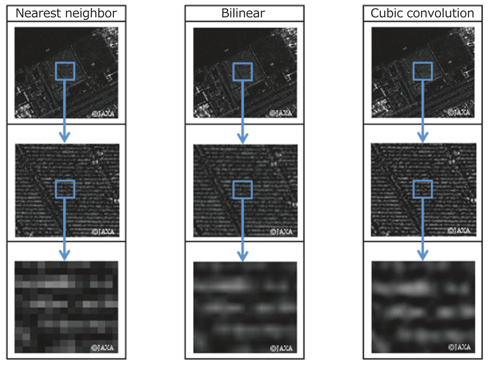 The table below shows the resampling methods for ALOS-2.